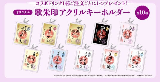 春に展開した第1弾が好評だったことを受け、 第2弾の「歌朱印」は新たにTHE ALFEE50周年記念ロゴをデザインしました。さらに、実施店舗でTHE ALFEEをイメージしたコラボドリンク2種を販売します。