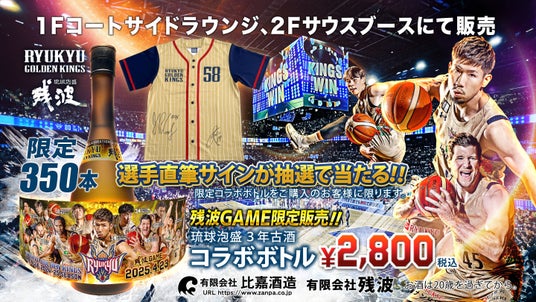 多くの方に愛飲されている沖縄の泡盛「残波」にキングスの選手がデザインされたコラボボトルは、毎年キングスファンの方々のコレクションとしてもお楽しみいただいております。数量限定350本の販売となっており、今年はサイン入りボトルとサイン入りグッズが当たる抽選も実施いたします!ぜひお早めにご購入ください。