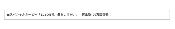 また、好評いただいておりますスペシャルムービー「ELYONで、暴れようか。」のYouTubeでの再生数が合計100万回を突破いたしました。