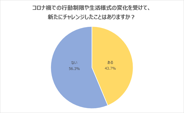 (4)約半数が「コロナ禍の行動制限や生活様式の変化を受けて、新たにチャレンジしたことがある」と回答