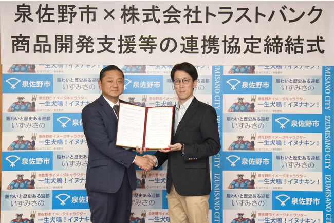 大阪府泉佐野市(市長:千代松 大耕)と国内最大級のふるさと納税総合サイト※1「ふるさとチョイス」を企画・運営する株式会社トラストバンク(本社:東京都渋谷区、代表取締役:川村憲一、以下「トラストバンク」)は、本日4月20日に商品開発支援等の連携に関する協定を締結いたしました。本協定により、地域の事業者の自立した持続可能な事業運営を推進するため、地場産品を活用した商品開発支援及び販路の提供に協力して取り組みます。
