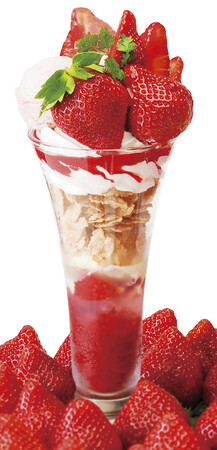 今回は、今が旬の、福岡県産苺「あまおう」を使ったパフェ&フルーツサンドが登場します。