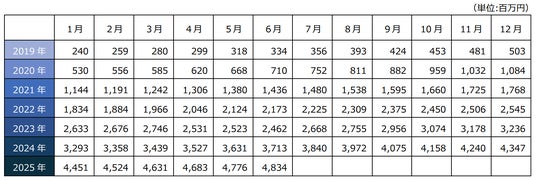 記載の売上は3か月移動平均のため、6月のツール販売については2025年3月に実施したCLIP STUDIO PAINTのメジャーバージョンアップ施策の実績が含まれておりません。
