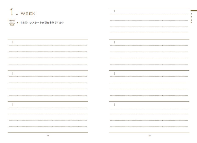 見開き1ページに1週間分の「5行日記」を書くスペースがあります。
