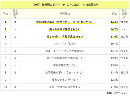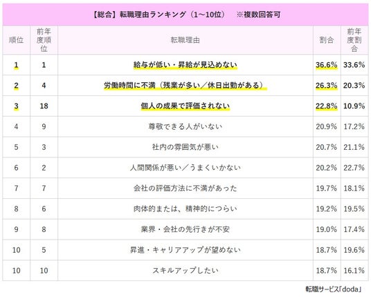 ※「転職理由ランキング【2025年版】」= https://doda.jp/guide/reason/