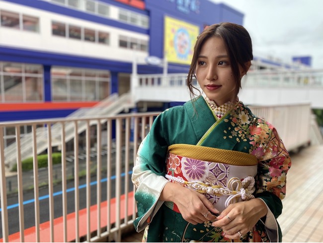 私自身振袖を着たのが初めてだったのもあって、まず襟や帯を選ぶのがすごく面白かったです!江戸時代からある日本古来の服装でもあるので、これほどまで華やかにしてくれる振袖を着る体験ができて嬉しかったです・ 綺麗なものが多くて悩みましたが、人生で着る機会があまりない中、私の大好きな緑の振袖を着ることができてとても光栄でした!!