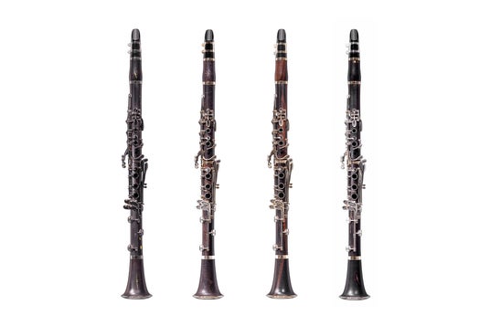 『Designed by Nature Clarinets』 左から『KINTSUGI』『FUMOKU』『SHIRATA』『IRIKAWA』