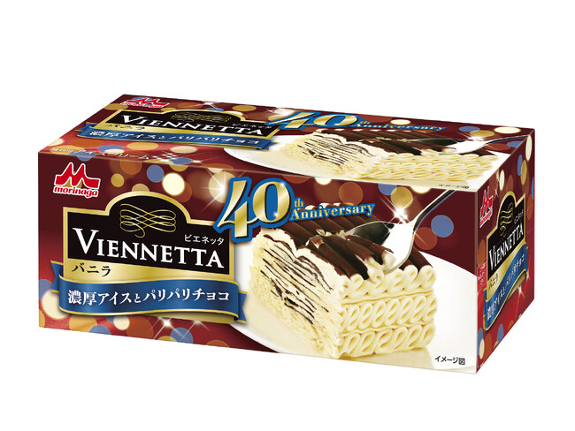 「ビエネッタ」は1983年9月に発売されたパリパリとした薄いチョコレートとアイスクリームを幾層にも重ねた、見た目の美しさと独特の食感をお楽しみいただけるケーキアイスです。2023年9月に発売から40周年を迎えます。