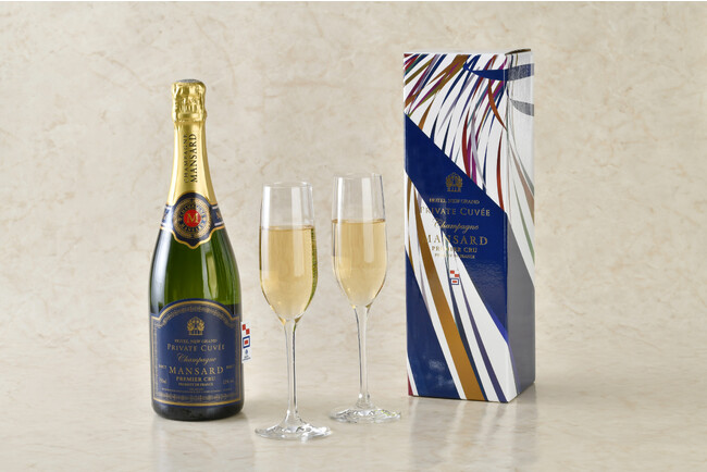 国内では当ホテルでしかお召し上がりいただけないマンサール社のシャンパンプルミエクリュ。果実味と酸味の調和がとれたリッチで上質な味わいの希少ワインをもっとお楽しみいただけます。ホテルオリジナルのデザインラベルとギフトボックスでご用意した当ホテル限定のお品は、新年のお祝いや卒入学、就職などの贈り物としてもおすすめです。