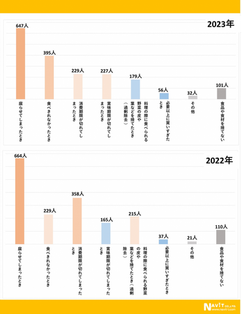 次に「食べきれなかったとき」が395人で、こちらは昨年の229人から166人も増えています。続いては「消費期限が切れてしまったとき」が229人で、こちらは逆に昨年の358人から129人減る結果となりました。