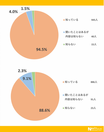 昨年(88.6%)と比べて5.9%も増えています。続いて「聞いたことはあるが内容は知らない」という方が4.0%で、昨年(9.1%)より5.1%減っています。この減った分が内容まで含めての認知に変化したのでしょう。