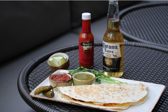 ハムケサディ-ヤ ハムとチーズを2枚のトルティーヤで挟んでカリッと焼き上げたっぷりのサワークリームとお召し上がりください。