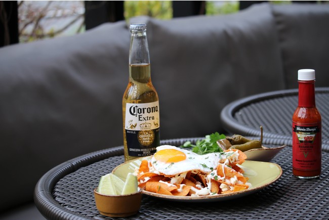 チラキレス メキシコでは朝食に食べるチラキレス トルティーヤチップスにチキン・サワークリーム・チーズを散らして最後目玉焼きをのせた1品。ハラペーニョソースと良く合います!