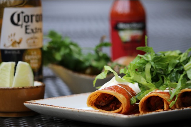 タコスドラドス トルティーヤにチキン・フェタチーズ・サワークリームを巻いて揚げたメキシコの春巻き