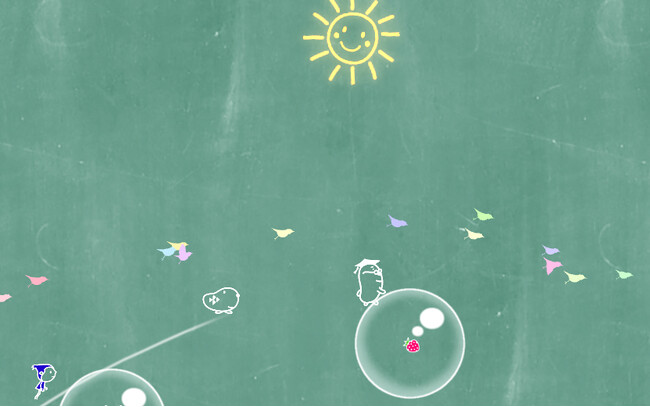 しかし、こびとをタッチしたり、浮遊するシャボン玉をタッチすることで、黒板の中の世界は変化していきます。