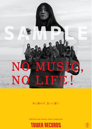 タワーレコードでは「NO MUSIC, NO LIFE.」意見広告シリーズの最新版に、GEZAN with Million Wish Collectiveが登場。このポスターはニューアルバム『あのち』の発売にあわせて、1月31日(火)よりタワーレコードおよびTOWERmini全店で順次掲示します。
