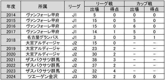 ジュニアコスモス城北 - 三菱養和巣鴨SS - 三菱養和巣鴨SC - FC東京U-18 - 早稲田大 - ヴァンフォーレ甲府 - 名古屋グランパス - 大宮アルディージャ - 名古屋グランパス - 大宮アルディージャ - ザスパクサツ群馬 - ツエーゲン金沢