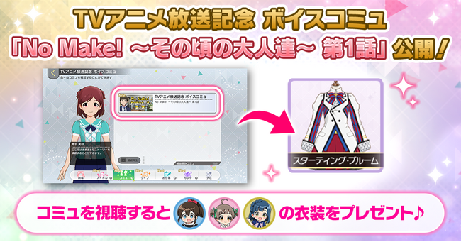 TVアニメ放送記念 ボイスコミュ「No Make! ~その頃の大人達~ 第1話」公開中!