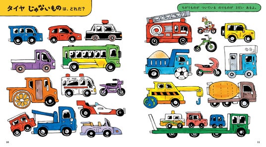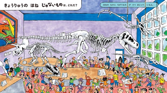 中垣ゆたかさんの緻密でとぼけた味わいのイラストが、とても魅力的な1冊。さっき登場した人が、実はあんなところにも、こんなところにも。眺めているだけで、お子さんの「さがしたい!」を刺激してくれます。ぜひ、親子で【じゃないもの】をさがして楽しんでください!