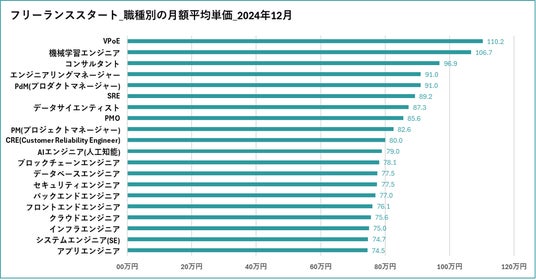 - 2024年12月のフリーランス案件の月額平均単価は74.9万円。