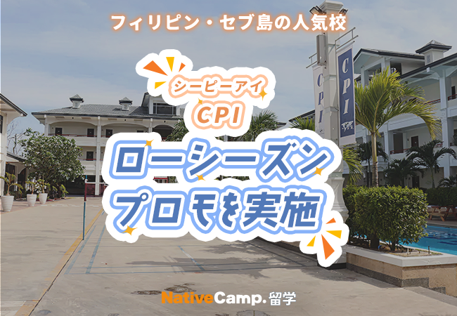 ネイティブスピーカーと回数無制限のオンライン英会話サービス「ネイティブキャンプ英会話」を展開する株式会社ネイティブキャンプ(東京都渋谷区 代表取締役: 谷川国洋)は、海外留学エージェントサービス「ネイティブキャンプ留学」において、フィリピン・セブ島の人気校「CPI」にて、ローシーズンプロモを実施いたします。