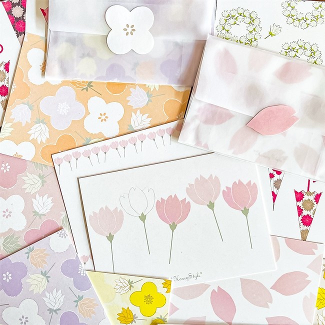 選べるレターセット〈便箋10枚・封筒3枚))660円、A7カード(5枚入り)275円、半透明封筒(3枚入り)385円から