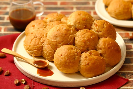こだわり:もっちりとしたキャラメル味のちぎりパン生地に、細かく砕いたアーモンドとキャラメル風
