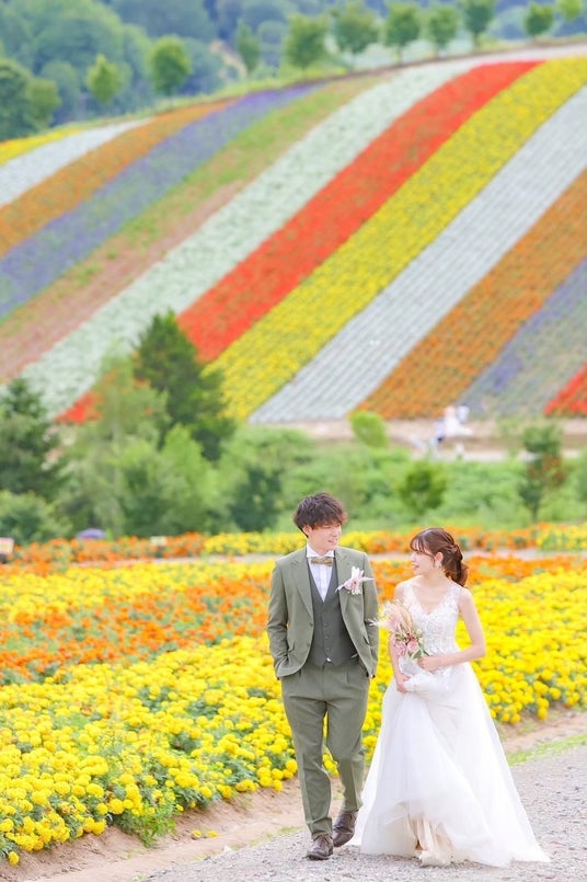 東京・原宿でスタジオフォト、北海道・富良野/美瑛周辺でのロケーションフォトの両方が叶う新フォトウェディングプランが5月からスタートいたしました!