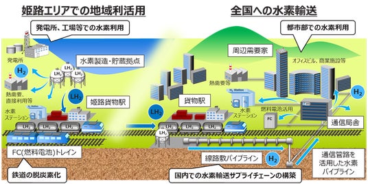 関西電力株式会社(以下、関西電力)、西日本旅客鉄道株式会社(以下、JR西日本)、日本貨物鉄道株式会社(以下、JR貨物)、日本電信電話株式会社(以下、NTT)、NTTアノードエナジー株式会社(以下、NTTアノードエナジー)、パナソニック株式会社(以下、パナソニック)の6社は、兵庫県姫路エリアでのインフラを活用した国内水素輸送・利活用等に関する協業について検討してきました。