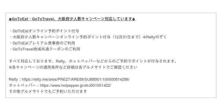 GoToもフル対応!飲み会・女子会・忘年会などの集まりにも使えるコースもアリ。
