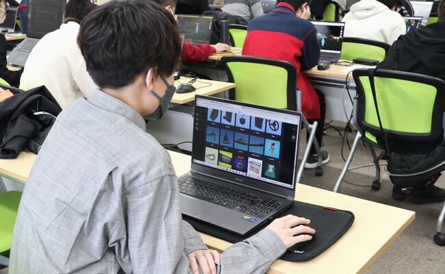 本イベントでは、NTT Comのサポートのもと、キャラクターデザイン科の学生がARコンテンツの制作に挑戦。3DCGモデルの制作に加え、イベントのプラットフォーム「STYLY」を運営する株式会社Psychic VR Labによる特別授業を受講し、学生が作成したモデルをAR空間に実装する仕組みを学びました。