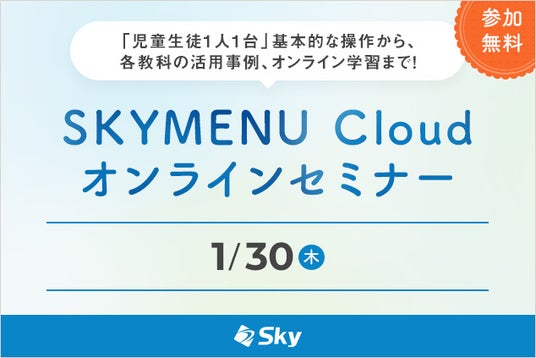 Sky株式会社では、児童生徒1人1台の学習活動端末支援Webシステム「SKYMENU Cloud」の基本的な使い方や教科指導、オンライン学習における活用例のご紹介など、毎月複数のテーマを設けてオンラインセミナーを開催しています。
