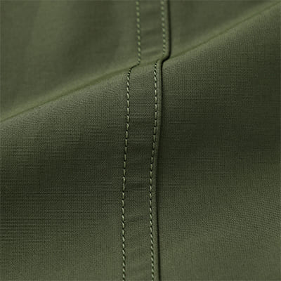 アメリカのアウトドアブランドが1960年代に開発した機能素材。横糸に高強度のコットンを60%、縦糸に高密度ナイロンを40%のバランスで混紡していることから「60/40 クロス」(ロクヨンクロス)と呼ばれています。その特徴は、湿気を吸うとコットンが膨張して水分の侵入を防いでくれること。温度や湿度変化にも柔軟に対応して長く着用いただけることに繋がります。