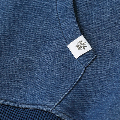先染めのダンボールニット素材で、裏の生成りの色が程よく表に響き立体的な生地感が特徴です。ダンボールニットとは丸編みで作られる編地で、表と裏の二枚の生地を重ねて表面糸と裏面糸を中糸で繋いだ生地のことを指します。この構造が、紙製のダンボールと同じ構造をしていることからダンボールニットと呼ばれています。 保温性やストレッチ性・軽量感が特徴です。