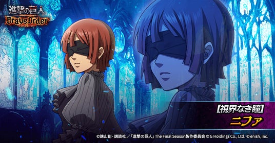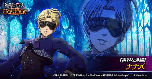 株式会社enish(本社:東京都港区、代表取締役社長:安徳 孝平、以下enish)は、アニメ『進撃の巨人』のスマートフォンゲーム最新作「進撃の巨人Brave Order」にて、2025年3月28日(金)より、「視界なき瞳が写すもの」を開催!また、本日より新登場の【視界なき瞳】ミカサ・アッカーマン、【視界なき瞳】ナナバ、【視界なき瞳】ニファがピックアップされた「視界なき瞳が写すものガチャ」も開催!その他、最新情報はゲーム公式サイト・ゲーム公式X(旧Twitter)アカウントにて随時公開して行きますので、ぜひご覧ください。