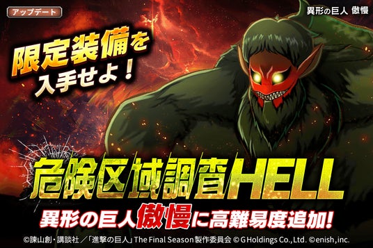 本日、2025年3月28日(金)より危険区域調査異形の巨人傲慢に高難易度が追加!団員と力を合わせて限定装備を入手せよ!