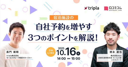 そしてtripla社からは、公式サイト予約システムの最適化とGoogleマップとの連携によって、OTAと併用しながらも、自社予約を着実に伸ばしていくための実践的な施策をご紹介します。