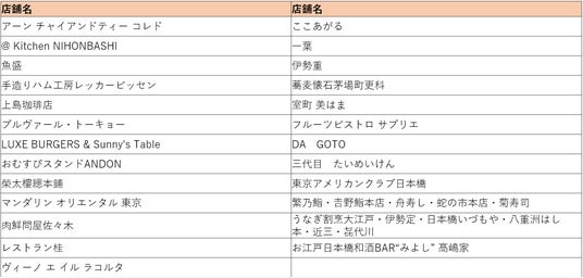 一般社団法人東京ステーションシティ運営協議会、COREDO日本橋、COREDO室町1~3・テラス、大丸東京店、東急不動産株式会社、東京建物株式会社、日本橋高島屋S.C.、日本橋三越本店、マンダリン オリエンタル 東京、三井不動産株式会社、三菱地所株式会社、野村不動産株式会社 他