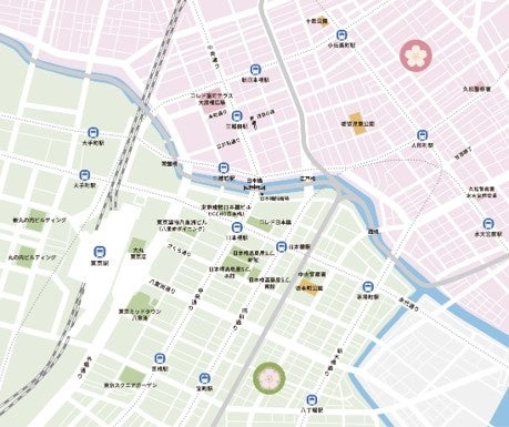 ・「桜メニュー&グッズ」各参加店舗 MAP内緑色シールエリア/3月18日(水)~ 4月5日(日)