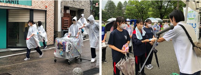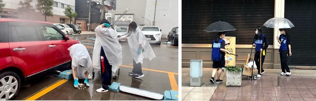 通常の競技時間は60分間ですが、雨が強まる予報となったため競技時間を40分間に短縮。8月に入り石川県でも新型コロナ第7波が猛威を振るい、感染対策を徹底して競技スタート。高校生達は若さ全開で金沢の繁華街に繰り出しました。開始早々に雨が強くなるも高校生たちはごみ拾いに奮闘。