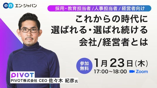 15回目となる今回は、YouTube登録者数250万人を誇るビジネスメディア『PIVOT』の創設者である佐々木紀彦氏をお迎えします。スタートアップから大手企業の経営者・様々な領域のトップランナーをインタビューしてきたご経験を持ち、自身も経営者として事業を伸ばし続けている佐々木氏と共に、参加者の皆さんからの質問を交えながら「これからの時代に選ばれる・選ばれ続ける会社/経営者とは」について考えていきます。