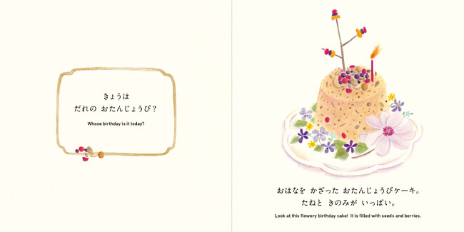 きょうは、誰かのおたんじょうび。特別なケーキを用意してみんなでお祝いします。「種と木の実がいっぱい入ったケーキ」は、だれのケーキ? 「にんじんとレタスとたんぽぽに囲まれたやさいのケーキ」は、だれのケーキ? テーブルには、本日のたんじょうびの〈主役さん〉のためのごちそうが、た~くさん並んでいます。みーんな、みんな、おたんじょうびおめでとう! 生まれてきたことを温かな気持ちで迎えられる、誕生日に贈る愛らしい1冊です。プレゼントにもおすすめ。