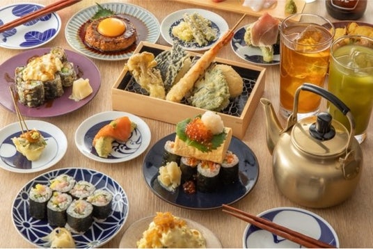 天ぷらや、つまみとして楽しめるあてまき(寿司)が、卓上設置の蛇口から好きなだけ注げる60分無料・飲み放題の焼酎で存分に楽しめます。また、京都ポルタ店限定でこだわりのランチメニューを提供します。
