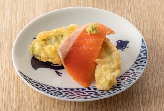 【天ぷら】アボカド生サーモン 275円