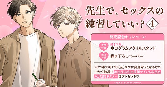 株式会社TORICO(本社:東京都千代田区、代表取締役社長:安藤拓郎)が運営するホーリンラブブックスにて、麻生実花先生『先生で、セックスの練習していい?(4)』発売記念キャンペーンを開催いたします。