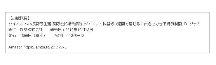 このたびぴあ株式会社より、『JA長野厚生連 長野松代総合病院 ダイエット科監修 1週間で痩せる!自宅でできる糖質制限プログラム』が、10月13日に発売となります。