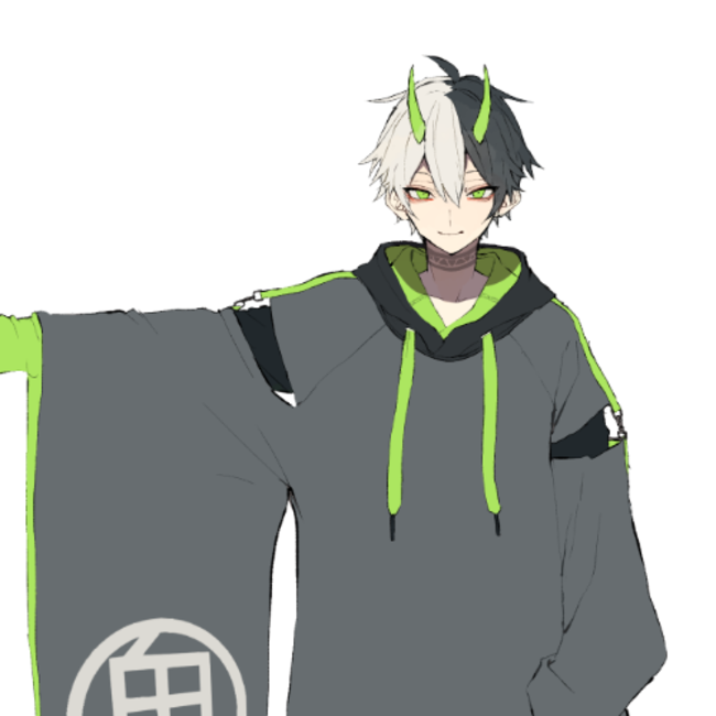 明るくポジティブで元気、平和主義だけどちょっぴり嘘つきな鬼。歌い手グループSODA KITのメンバーであり、力強さとハイトーンが特徴のVSinger/VTuber。ユプシロンの兄で、本作品でも兄弟として描かれている。