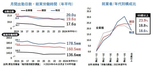 建設・物流業の人手不足は、労働時間の減少かつ高齢化によってさらなる難局か