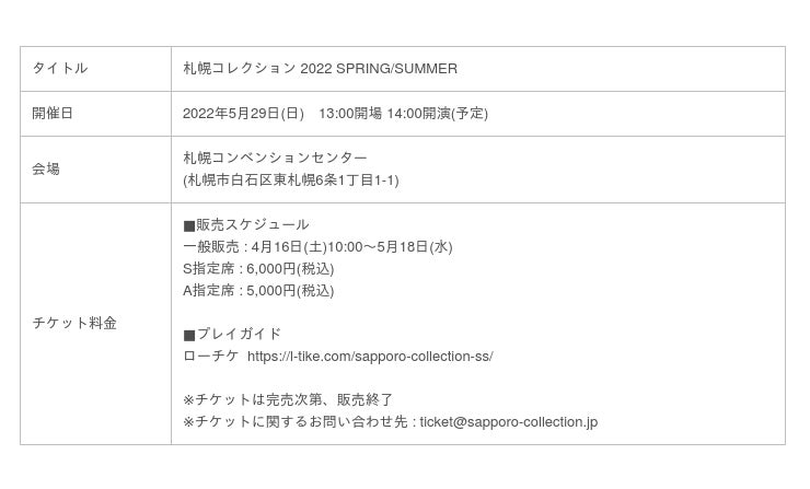 札幌コレクション 2022 SPRING/SUMMER 開催概要