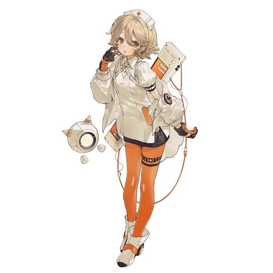 ナースロボ_タイプTは「倉成町私立病院」で登場するキャラクターの一人である。医者によって作られたナース型アンドロイド、優しく囁き系の少女声が特徴で、人気を博している。今回、VOCALOID6向けに新たに描き下ろした衣装デザインで登場。